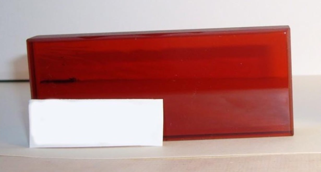 Red and orange colored glass for light filters without the use of highly toxic compounds of cadmium (Cd).