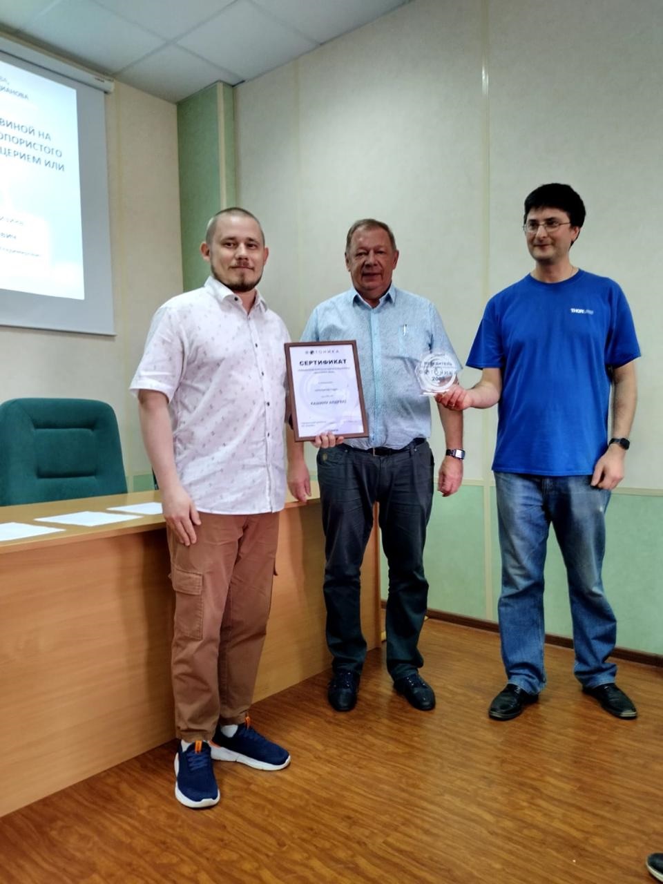 1. На заседании были вручены сертификаты и памятные знаки лауреатов третьей ежегодной корпоративной премии Швабе «ФотоНИКА» сотрудникам научного отделения № 6 «Волокно» А.И. Кашину в номинации ОТКРЫТИЕ ГОДА и Г.А. Пчелкину в номинации ЛУЧШИЙ МОЛОДОЙ СПЕЦИАЛИСТ.