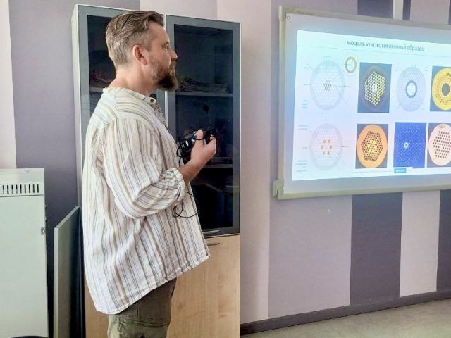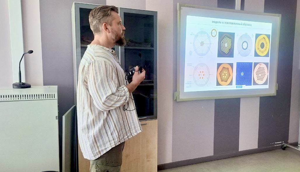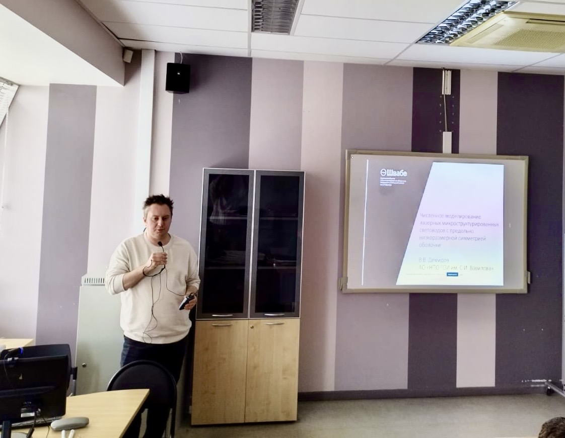 Руководитель по направлению «Кварцевые стекла» АО «НПО ГОИ им. С.И. Вавилова» Демидов Владимир Витальевич представил доклад «Численное моделирование лазерных микроструктурированных световодов с предельно низкоразмерной симметрией оболочки». Это попытка дать оценку пространственных характеристик световых потоков в конфигурации лазерных микроструктурированных волоконно-оптических элементов с двойной оболочкой для их последующей практической реализации.