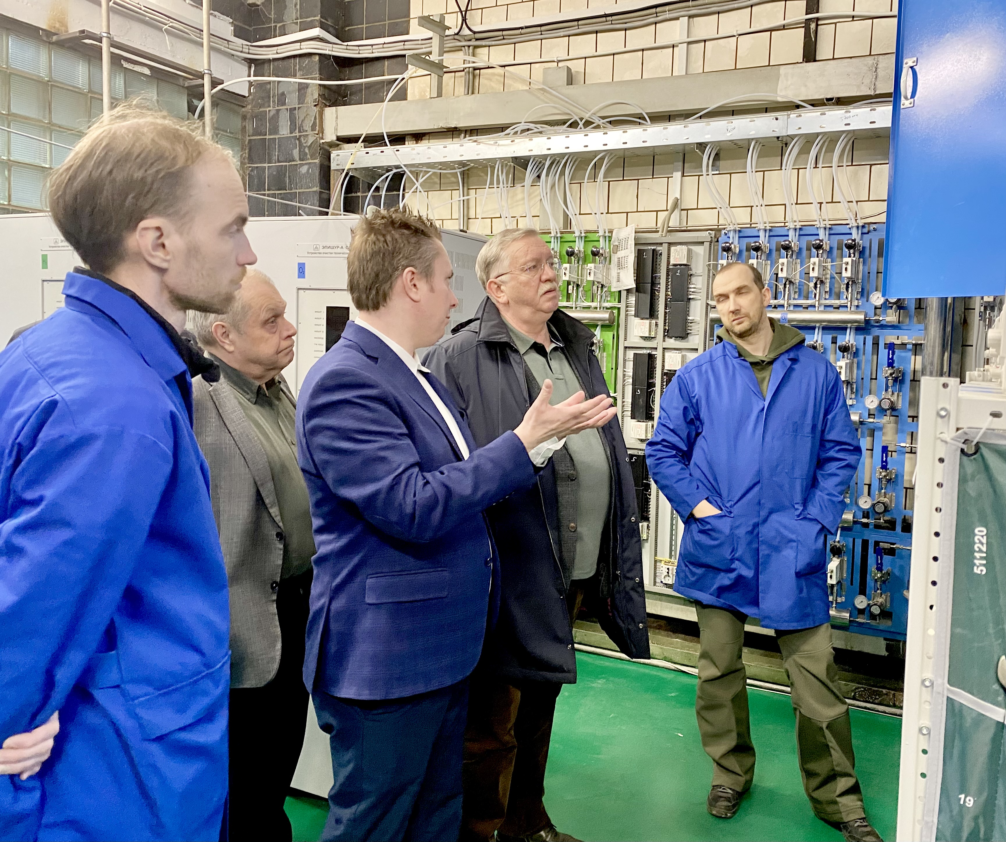 В ходе визита была продемонстрирована опытная установка для производства особо чистых материалов на основе диоксида кремния методом пламенного гидролиза кремнийорганических соединений. Данные материалы разрабатываются в интересах ИЛФИ, их создание поддерживается на высоком уровне лично Гараниным С.Г. После ознакомления с особенностями работы оборудования и технологическим процессом Сергей Григорьевич высказал несколько полезных советов по совершенствованию технологии, в частности, необходимости учета влияния газодинамических процессов и степени агломерации образующихся частиц материала на его оптическое качество – пузырность и оптическую однородность.