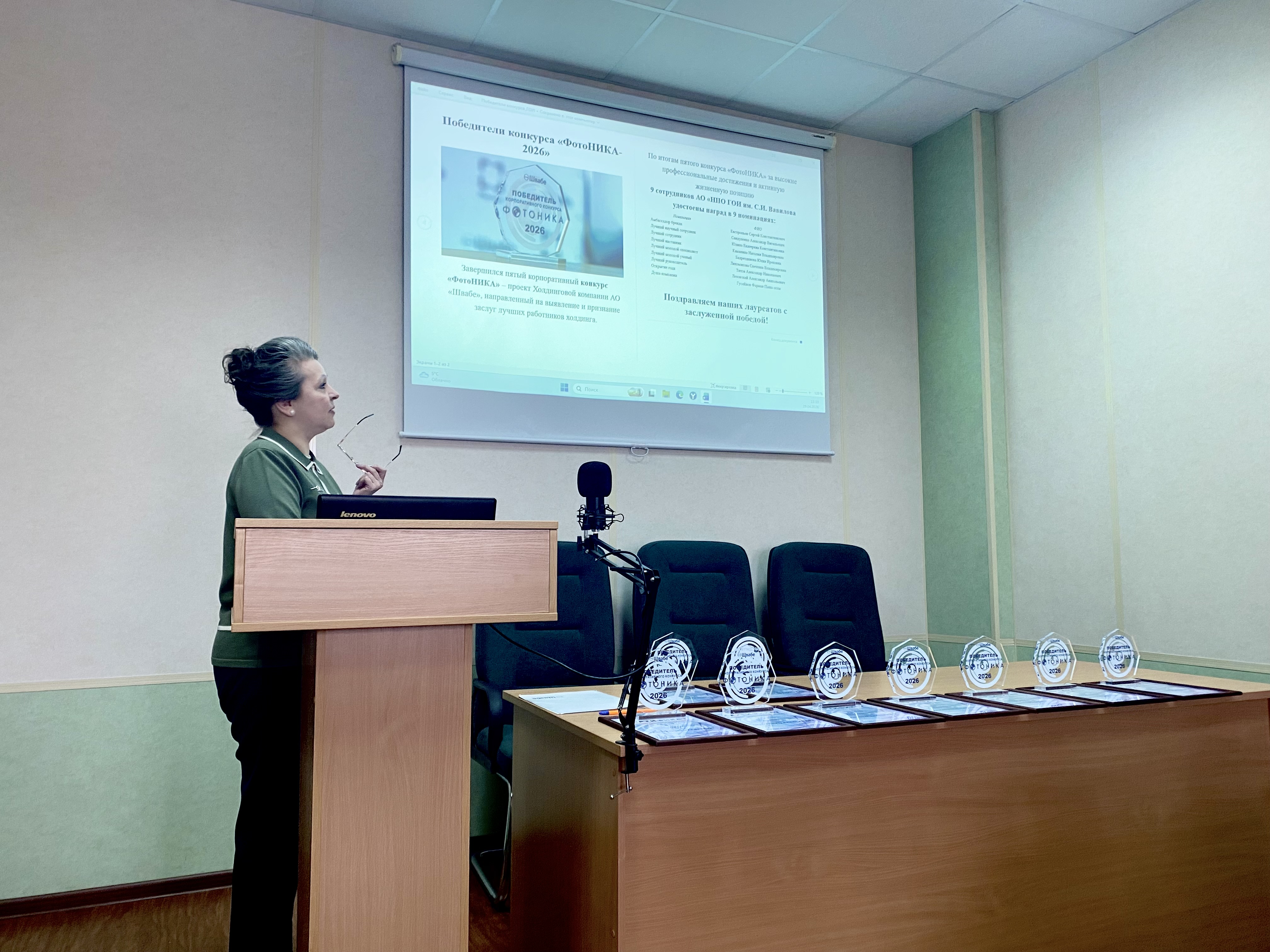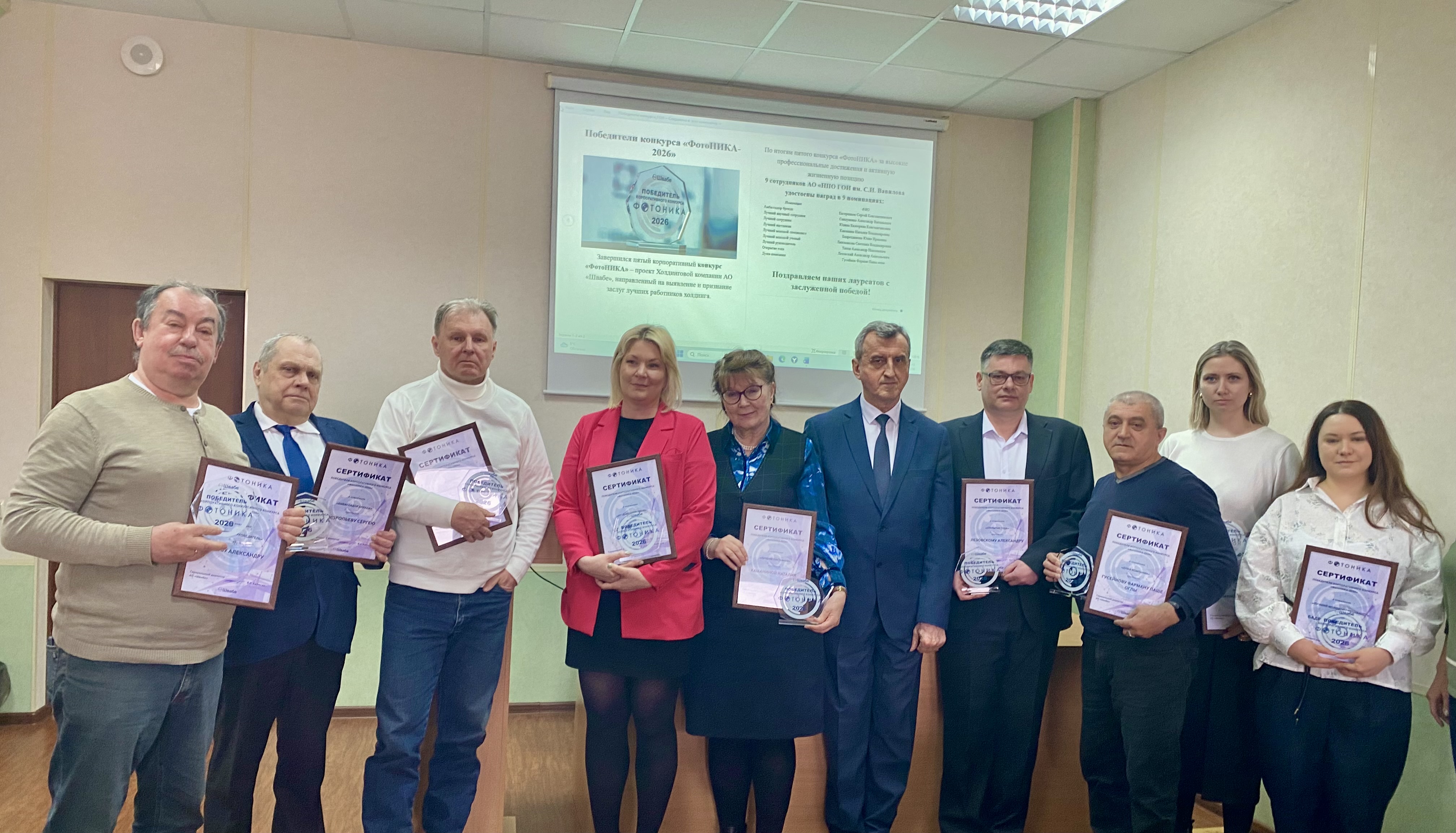 29.04.2026 состоялось торжественное вручение наград номинантам пятого корпоративного конкурса «ФотоНИКА» – проекта Холдинговой компании АО «Швабе», направленного на выявление и признание заслуг лучших работников холдинга.