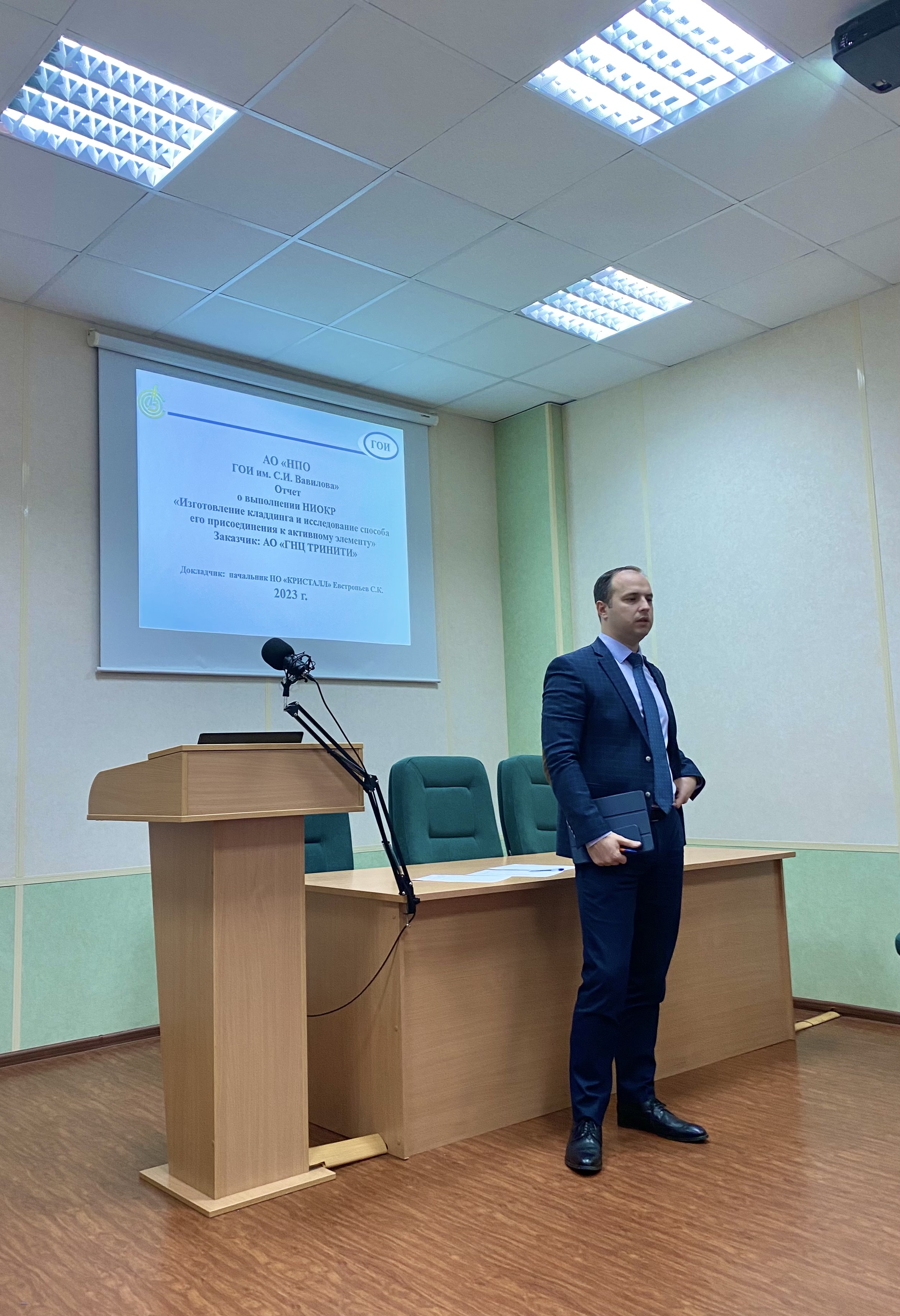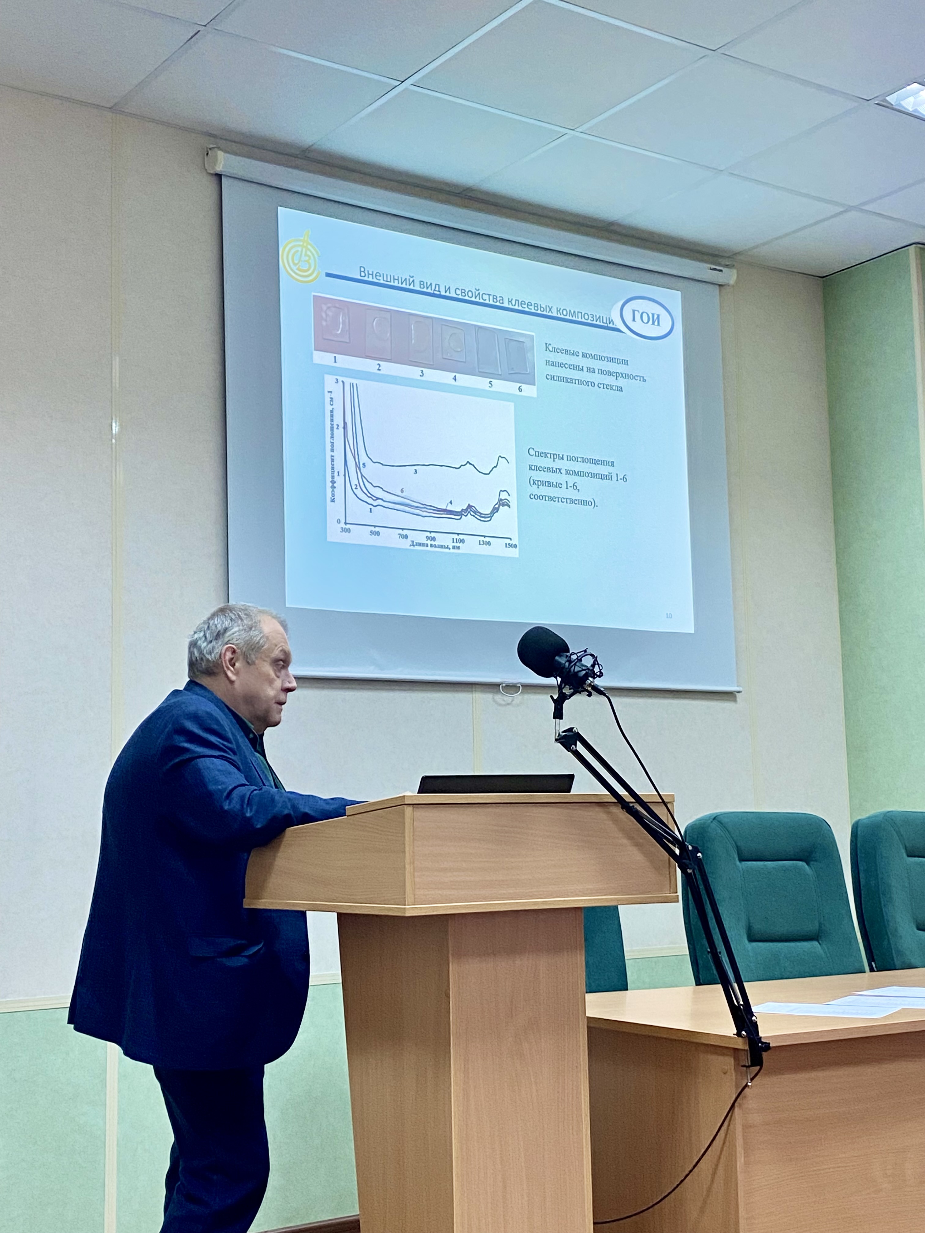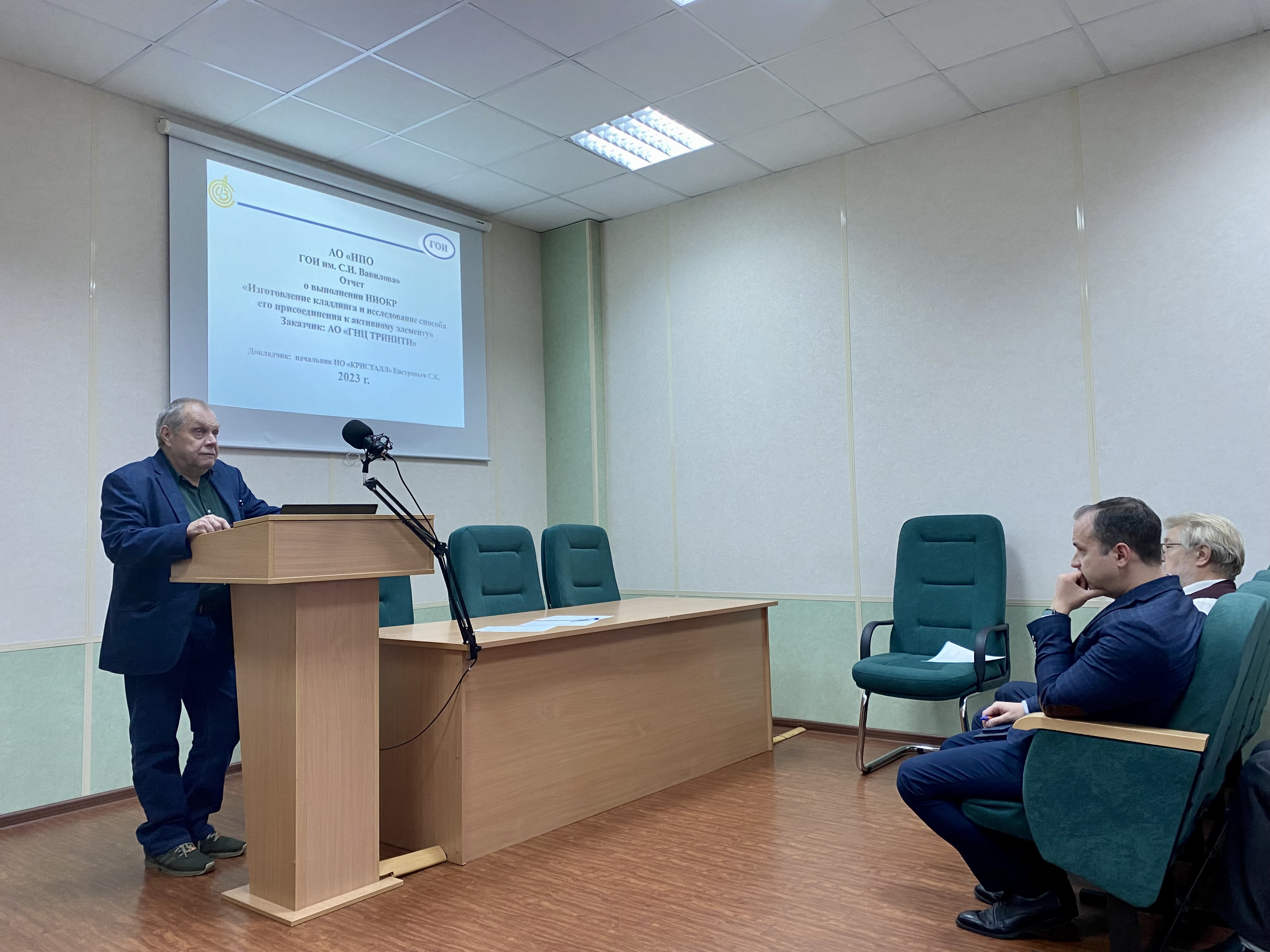 Был заслушан доклад начальника научного отделение №5 «Кристалл», доктора химических наук Сергея Константиновича Евстропьева - руководителя НИОКР по теме «Изготовление кладдинга и исследование способа его присоединения к активному элементу» (Заказчик АО «ГНЦ РФ ТРИНИТИ»).