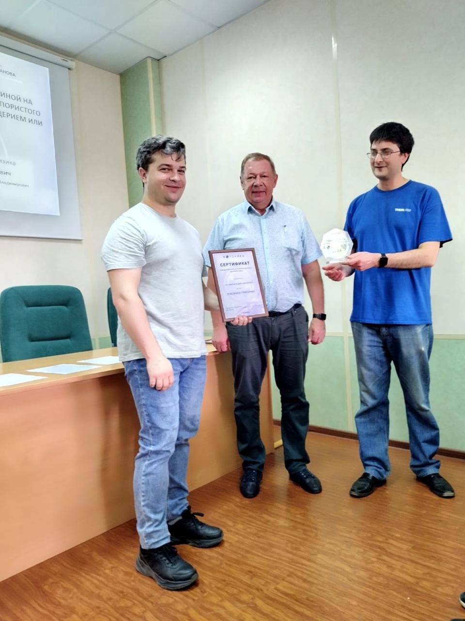 1. На заседании были вручены сертификаты и памятные знаки лауреатов третьей ежегодной корпоративной премии Швабе «ФотоНИКА» сотрудникам научного отделения № 6 «Волокно» А.И. Кашину в номинации ОТКРЫТИЕ ГОДА и Г.А. Пчелкину в номинации ЛУЧШИЙ МОЛОДОЙ СПЕЦИАЛИСТ.