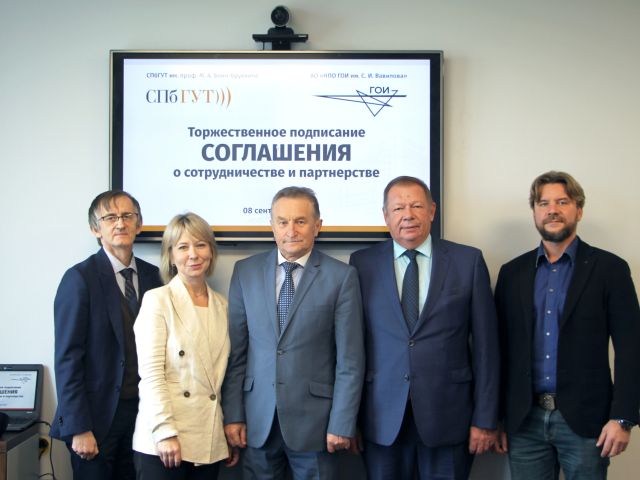 Документ подписали исполняющий обязанности ректора СПбГУТ Георгий Машков и генеральный директор НПО ГОИ им. С. И. Вавилова Константин Дукельский.