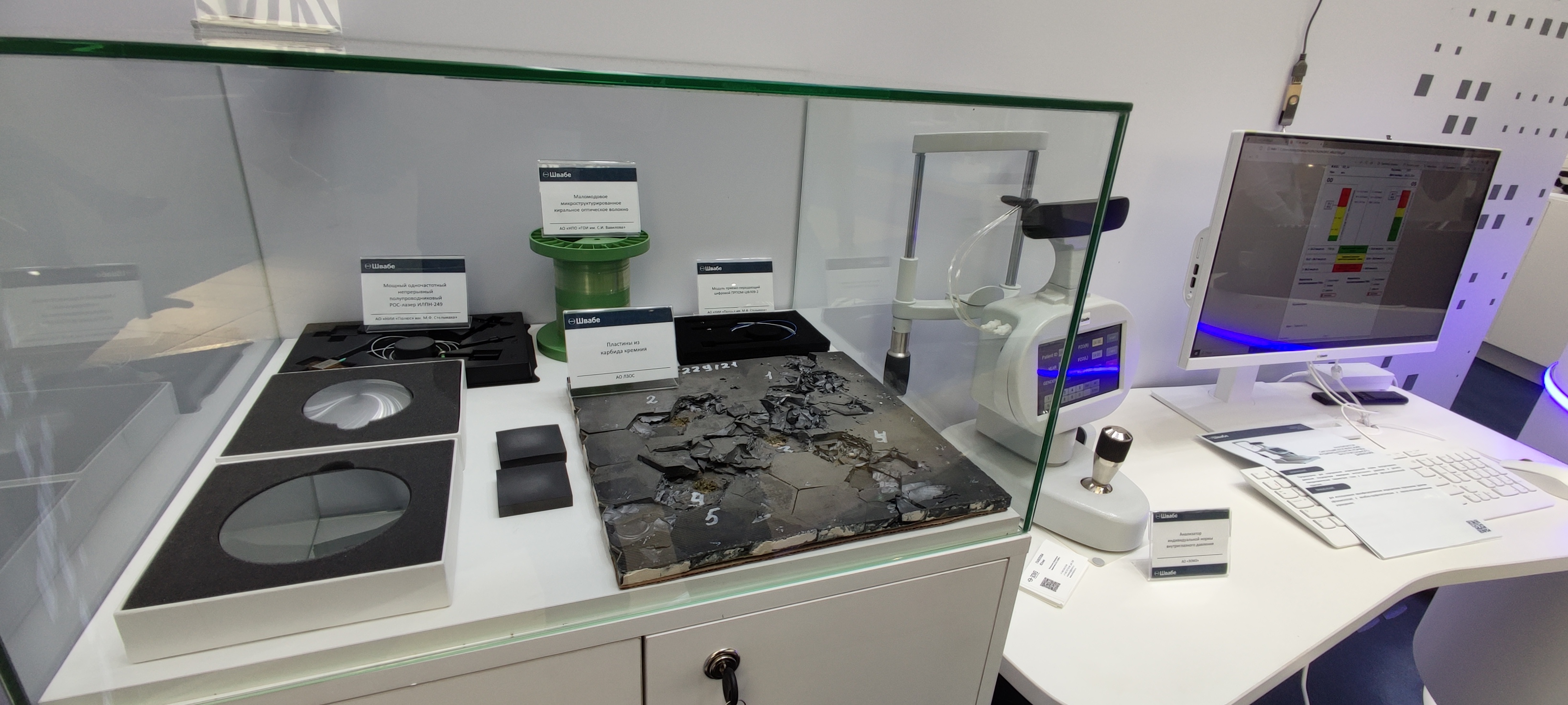 Стенд Холдинговой компании «Швабе» был наполнен инновационной продукцией, входящих в нее организаций. Продукцию АО «НПО ГОИ им. С.И. Вавилова» на стенде «Швабе» представил младший научный сотрудник Научного отделения №6 "Волокно" Пчёлкин Григорий Александрович. Посетителям стенда был представлен для ознакомления образец микроструктурированного оптического волокна с наведённой киральностью (закруткой), а также каталог продукции АО «НПО ГОИ им. С.И. Вавилова». Стоит отметить, что наибольший интерес гостей и посетителей из выпускаемых АО «НПО ГОИ им. С.И. Вавилова» изделий и материалов, вызвали активные кристаллы и кварцевые капилляры.