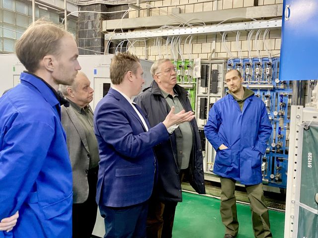 В ходе визита была продемонстрирована опытная установка для производства особо чистых материалов на основе диоксида кремния методом пламенного гидролиза кремнийорганических соединений. Данные материалы разрабатываются в интересах ИЛФИ, их создание поддерживается на высоком уровне лично Гараниным С.Г. После ознакомления с особенностями работы оборудования и технологическим процессом Сергей Григорьевич высказал несколько полезных советов по совершенствованию технологии, в частности, необходимости учета влияния газодинамических процессов и степени агломерации образующихся частиц материала на его оптическое качество – пузырность и оптическую однородность.