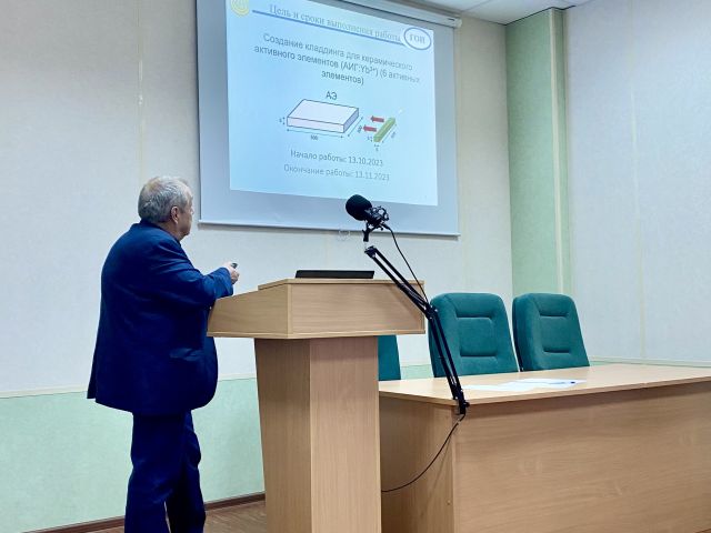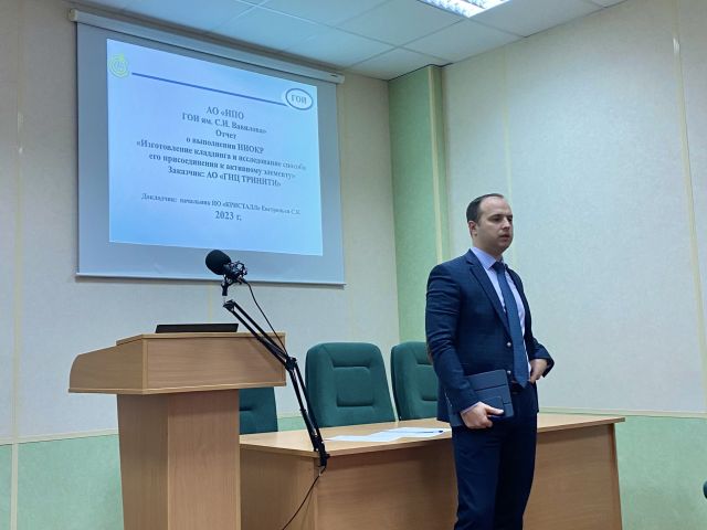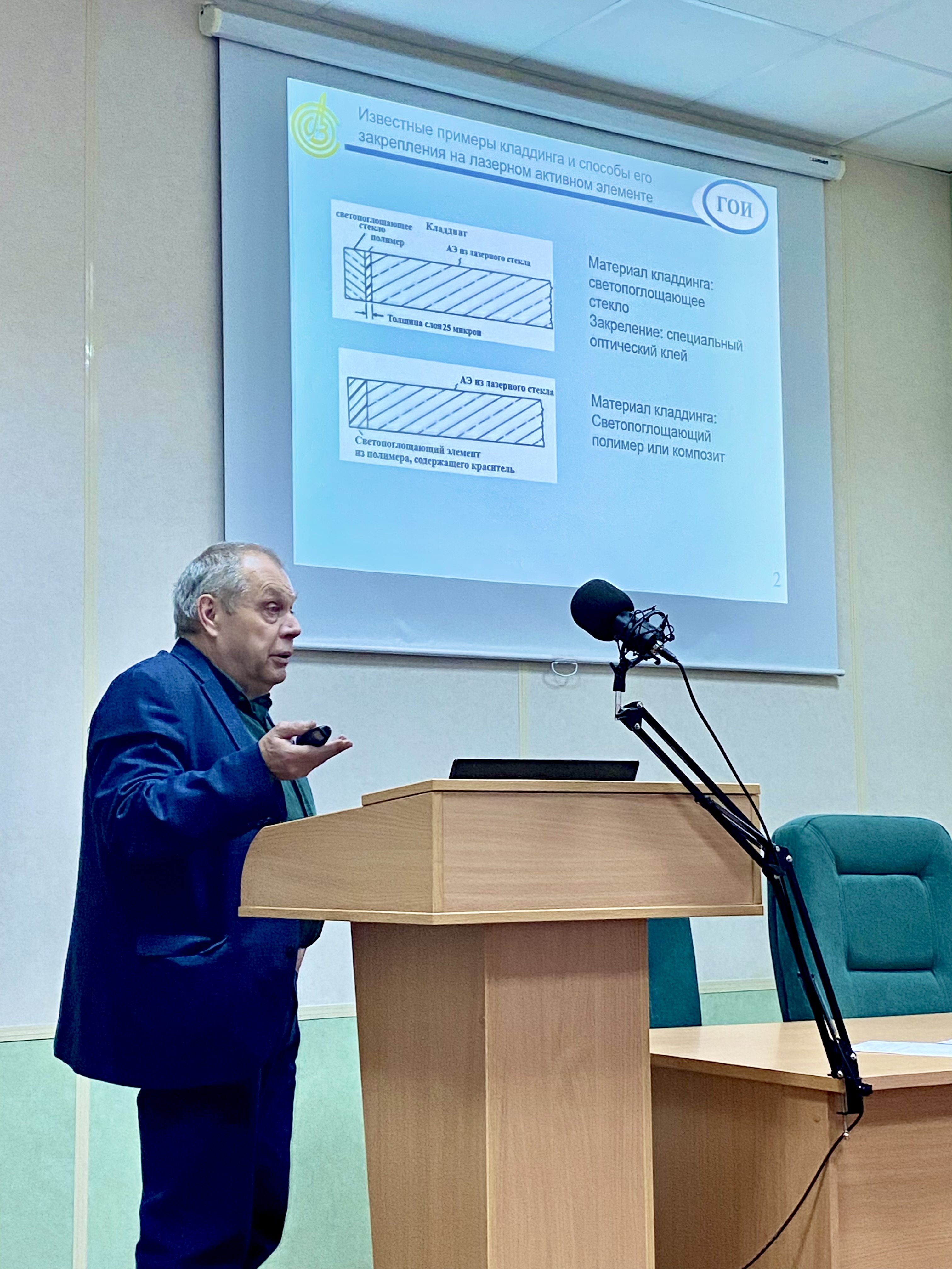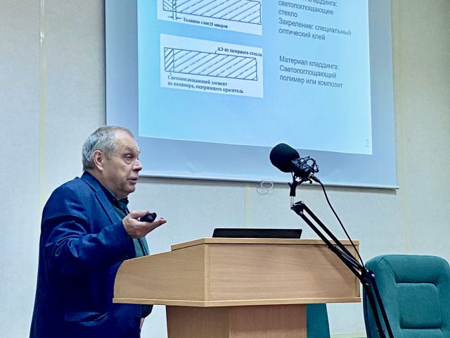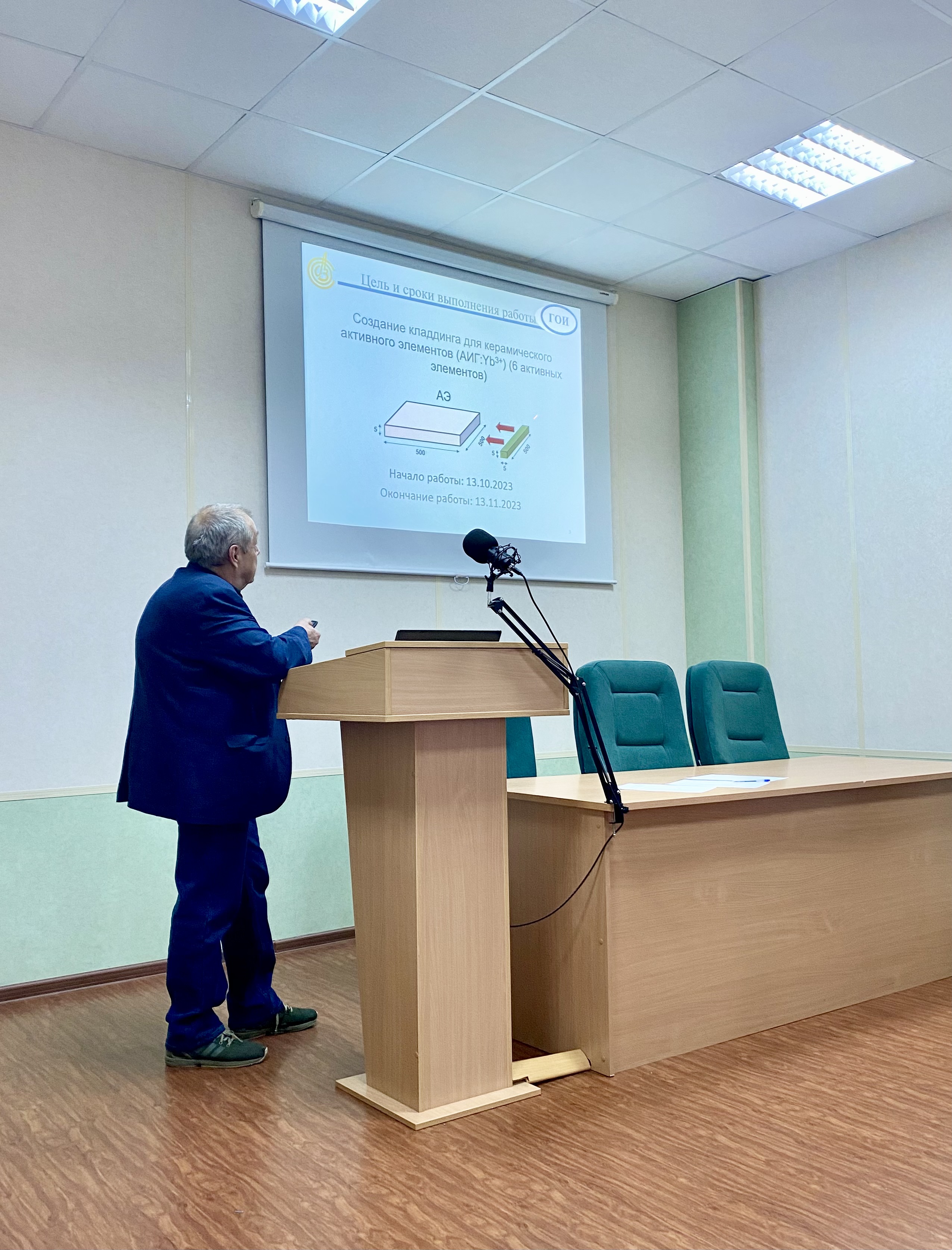 Был заслушан доклад начальника научного отделение №5 «Кристалл», доктора химических наук Сергея Константиновича Евстропьева - руководителя НИОКР по теме «Изготовление кладдинга и исследование способа его присоединения к активному элементу» (Заказчик АО «ГНЦ РФ ТРИНИТИ»).