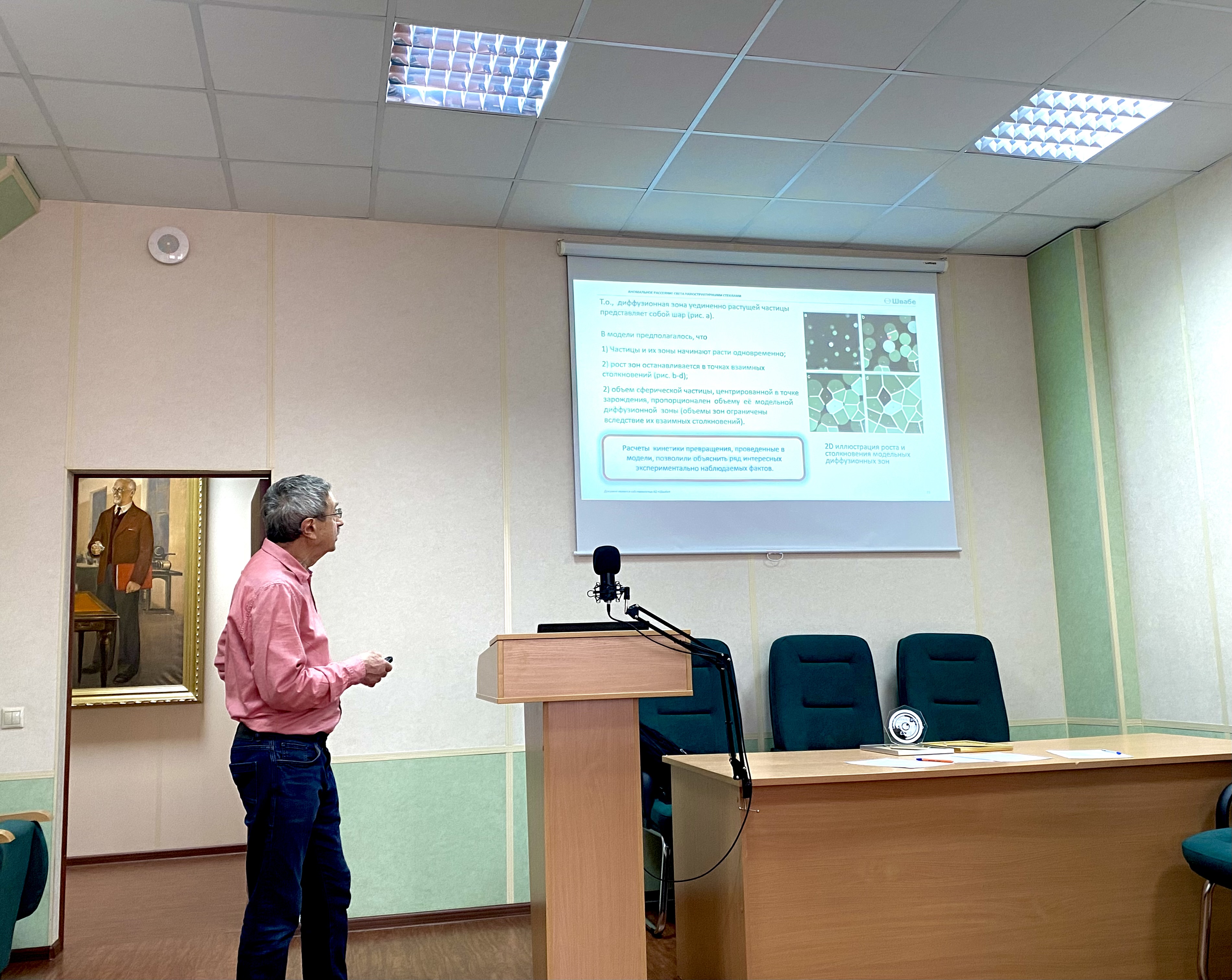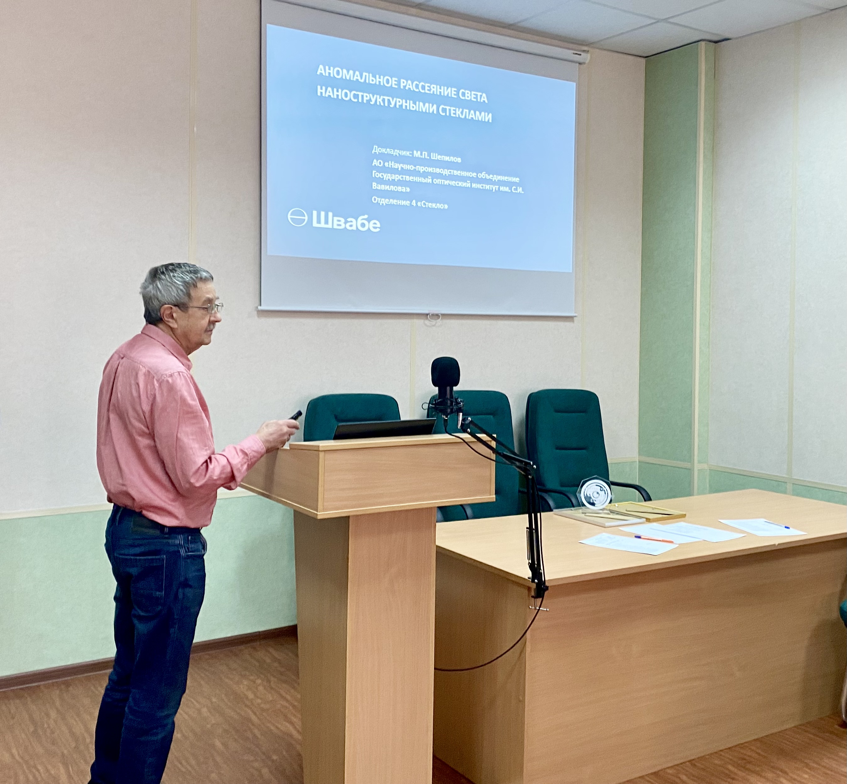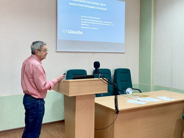 Был заслушан доклад старшего научного сотрудника Научного отделения №4 «СТЕКЛО» Михаила Павловича Шепилова. Тема доклада "Светорассеяние в наноструктурированных стеклах". Докладчик выступил с подробной презентацией, после которой членами НТС были заданы многочисленные вопросы, и состоялась оживленная дискуссия.