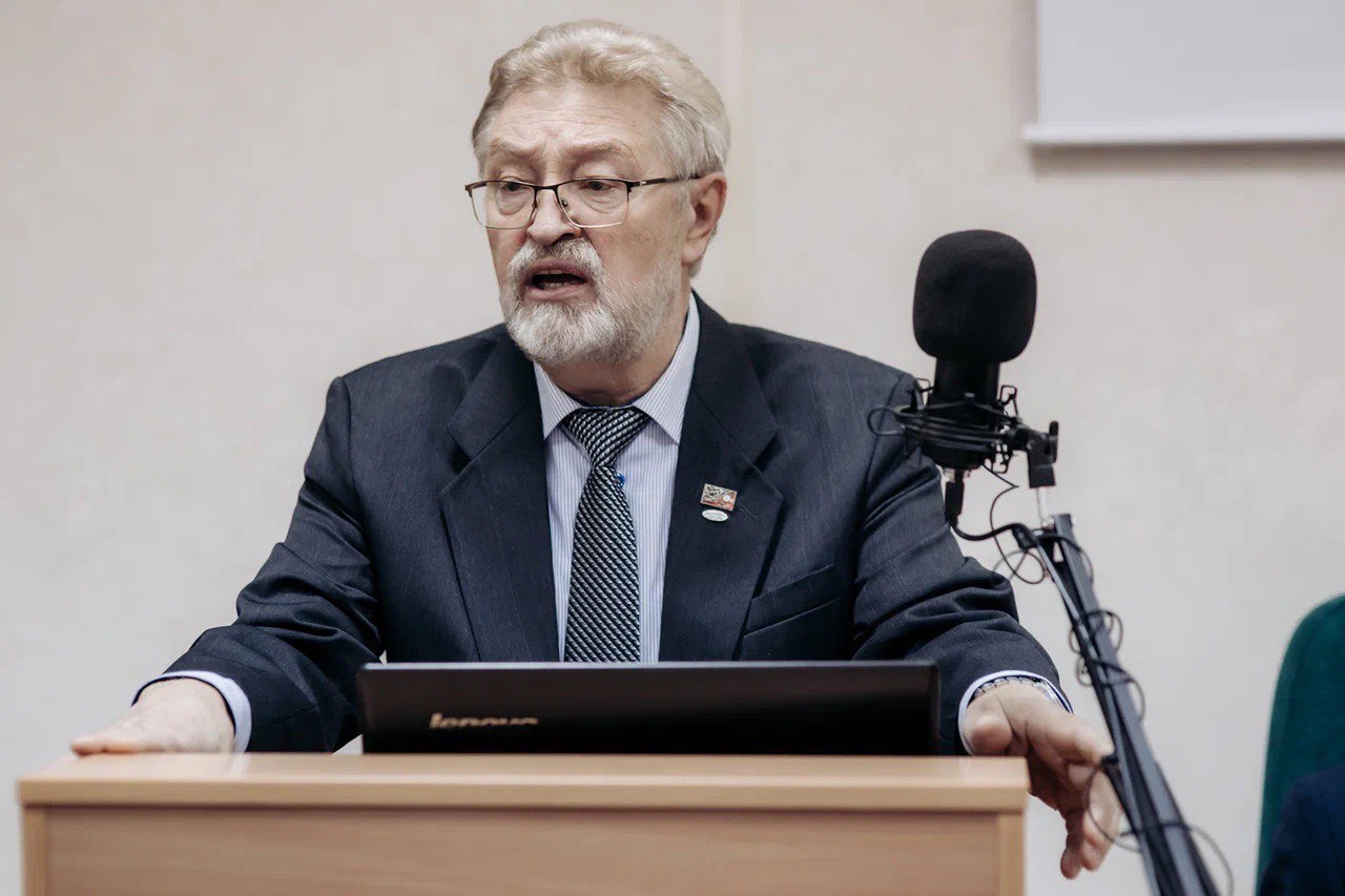 Затем слово было предоставлено одному из старейших сотрудников института, научному консультанту, доктору физико-математических наук, профессору В. И. Арбузову. К торжественной дате Валерий Иванович подготовил доклад об истории создания завода оптического стекла в городе на Неве, в котором отметил основные вехи развития предприятия.