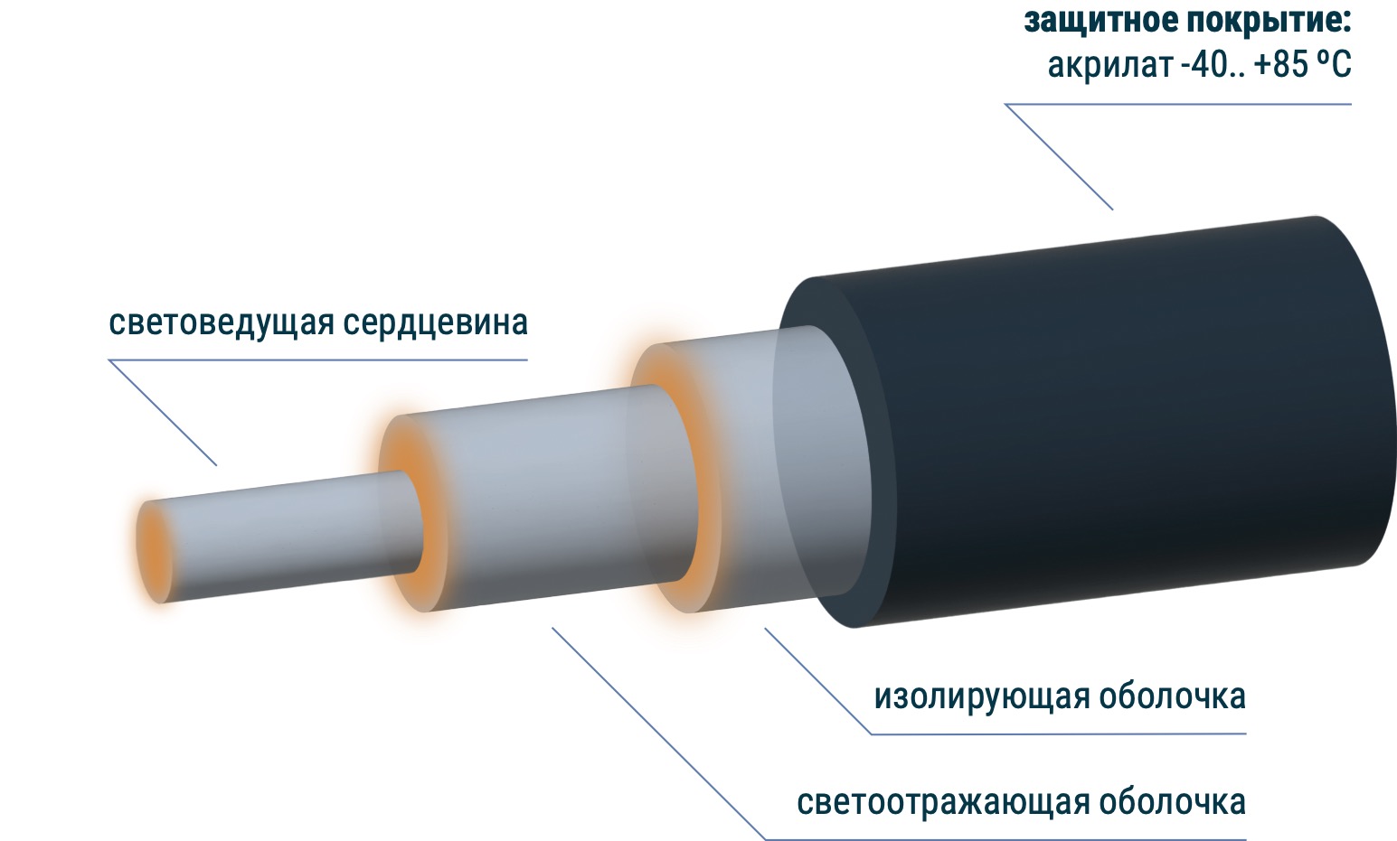 | Диаметр волокна в первичном защитном покрытии, мкм | 190 ± 5 |